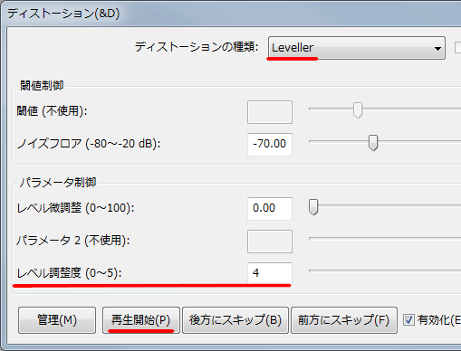 | まず魔物(小物)の声を参考に、「エフェクト」→「変更:ピッチの変更」で-25%〜-30%ぐらい今度は音程を下げます。 次に同じく「エフェクト」→「伸縮:Paul ストレッチ」、伸縮倍数:1/時間分解能:0.05です。