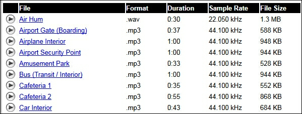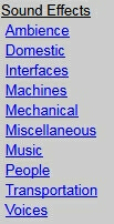 ![]() http://www.pacdv.com/sounds/ 効果音数900以上/WAVもしくはMP3 ここも良い音がたくさんあり、すばらしいサイトです。 ![]() きちんと分類されてます。 ![]() 左の三角で再生。保存する場合は青色のファイル名を右クリックして保存。