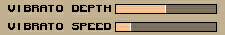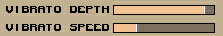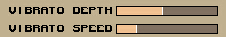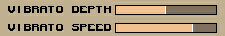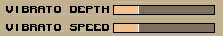 ![]() (ビブラートの深さ)。ビブラートというのは音の後ろを震わすことです。バイオリンなどの弦楽器にお詳しい方には御馴染みの単語です ね。 ただこれは深さの設定なので、下の (ビブラートの速度)と組み合わせないと、音を震わすことはできません。 |