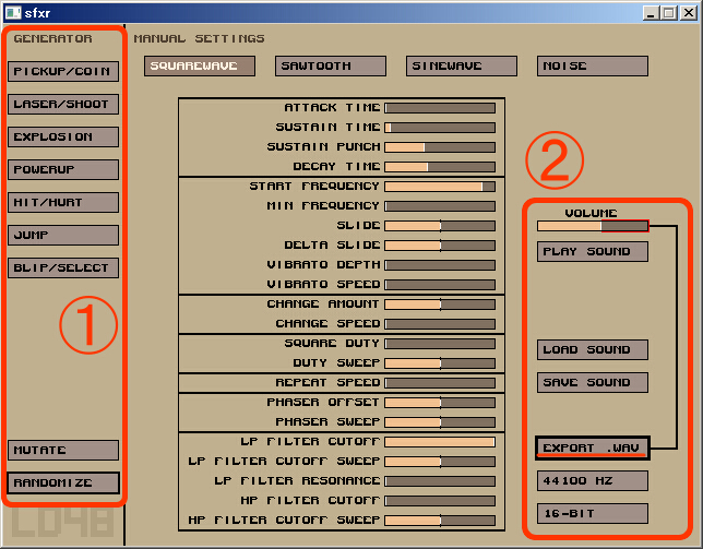 ![]() 1、GENERATOR(効果音の生成)
