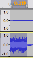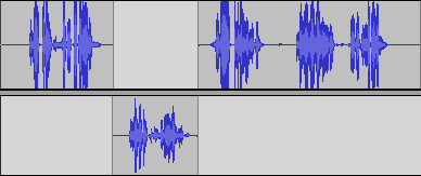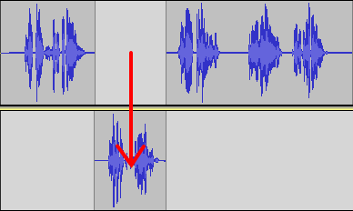 次にカーソルを (タイムシフトツール)にして、本部の声を真下に移動し、声を別々にします。