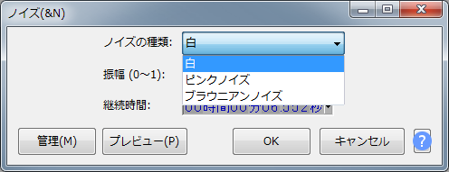ここでは一番五月蝿いホワイトを、振幅(音量)0.3で選択します。