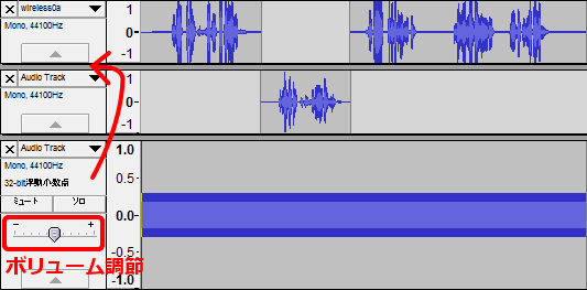 ノイズが大きかったり小さかったりする場合は、トラックの左側の−+のバーで調節してください。 |