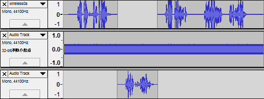 まず編集しやすいよう、兵士側の声と本部側の声でトラックを分割してみます。(普通は一人芝居とかしないでしょうから、この作業は必要ないです)